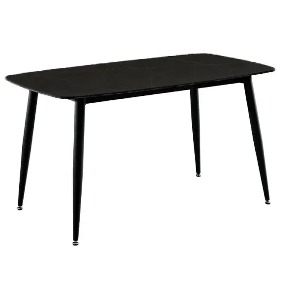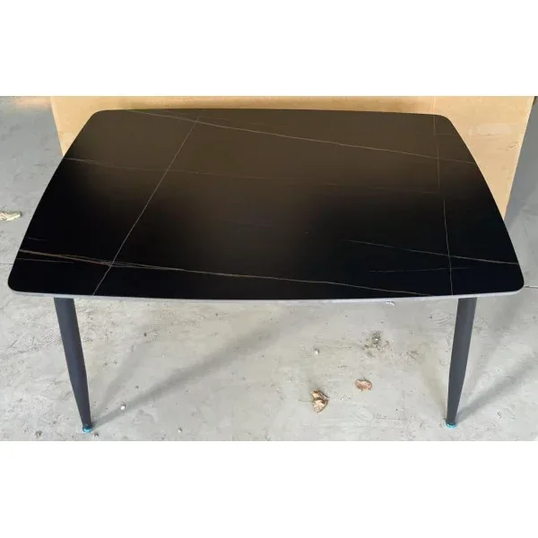 Прямоугольная форма делает стол удобным для использования, а металлические ножки чёрного цвета с плавными закруглениями придают конструкции лёгкость и устойчивость.