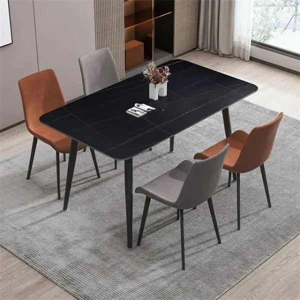 Обеденный стол — это сочетание элегантного дизайна и современных материалов. Столешница выполнена из керамической плиты толщиной 12 мм с красивым мраморным рисунком. Такая поверхность не только стильная, но и практичная — устойчива к нагреву, царапинам и требует минимального ухода.