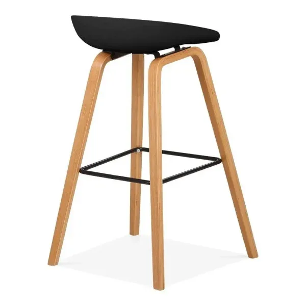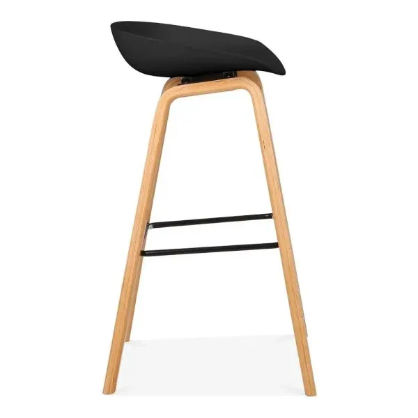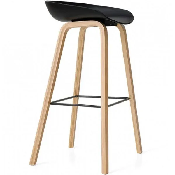 Табурет для бара пластик черный — это современная и стильная модель, сочетающая комфорт и надёжность. Сиденье выполнено из прочного полипропилена, имеет лёгкую округлую форму для удобного положения при сидении. Основание состоит из четырёх металлических ножек с эпоксидным покрытием под дерево, что придаёт изделию эстетичный и натуральный вид.